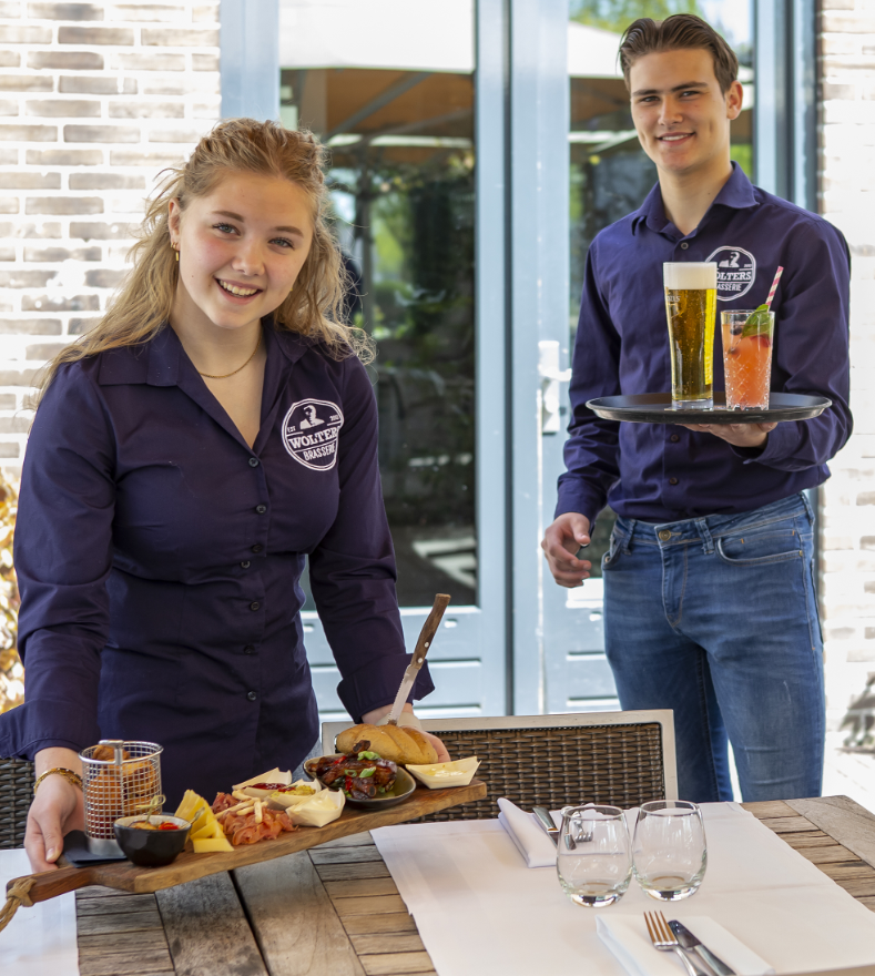 De tijden waarop Senna en Job bij Brasserie Wolters werken, zijn heel flexibel en worden altijd aangepast aan het schoolrooster. Senna en Job: “Ze houden bij Wolters echt goed rekening met je school of als je bijvoorbeeld examens hebt.” “Toen ik er begon met werken, kende ik nog maar één iemand, maar al snel leerde ik iedereen kennen”, vertelt Senna enthousiast. Job: “Toen ik bij Wolters kwam werken, kende ik een paar mensen. Ondertussen ken ik iedereen die bij Wolters werkt. Je wordt snel welkom geheten en positief ontvangen en dat was wel heel erg fijn.”