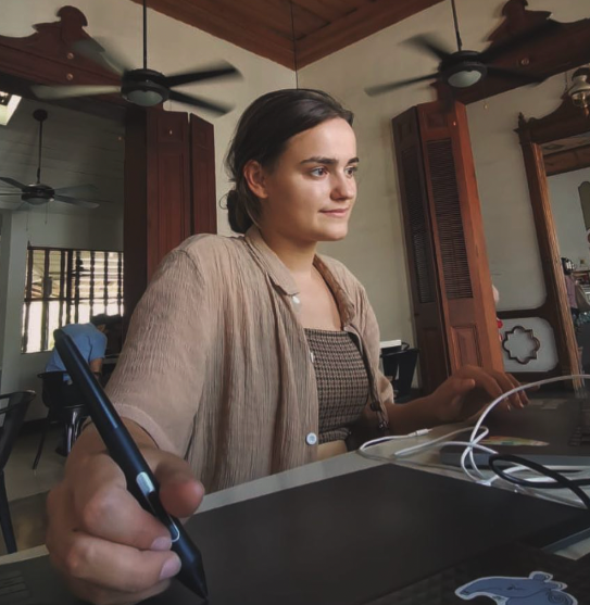 Dit land is echt een paradijs. Hoe belandt een meisje uit Nistelrode hier? Van jongs af aan was ik al een grote dierenvriend en ik wilde niets liever dan het oerwoud redden. Daarom besloot ik na Gymnasium Bernrode biologie te gaan studeren aan de Universiteit van Leiden. Daar leerde ik over alle ecosystemen die de planten, dieren en paddenstoelen op aarde verbinden. Naast biologie en wetenschap was ik altijd al gek op tekenen. Ik maakte graag realistische portretten van mijn familieleden en huisdieren.